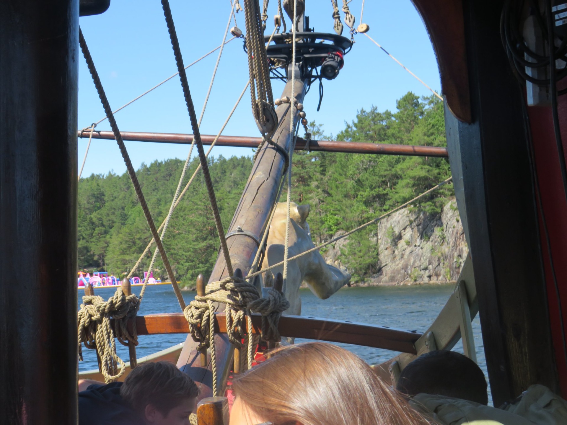 Da jeg skulle ta bildet av navnet til skipet så smalt de med kanonene og jeg måtte ta et nytt et. Da kanonene smalt skvatt jeg og følte meg litt forskrekket.