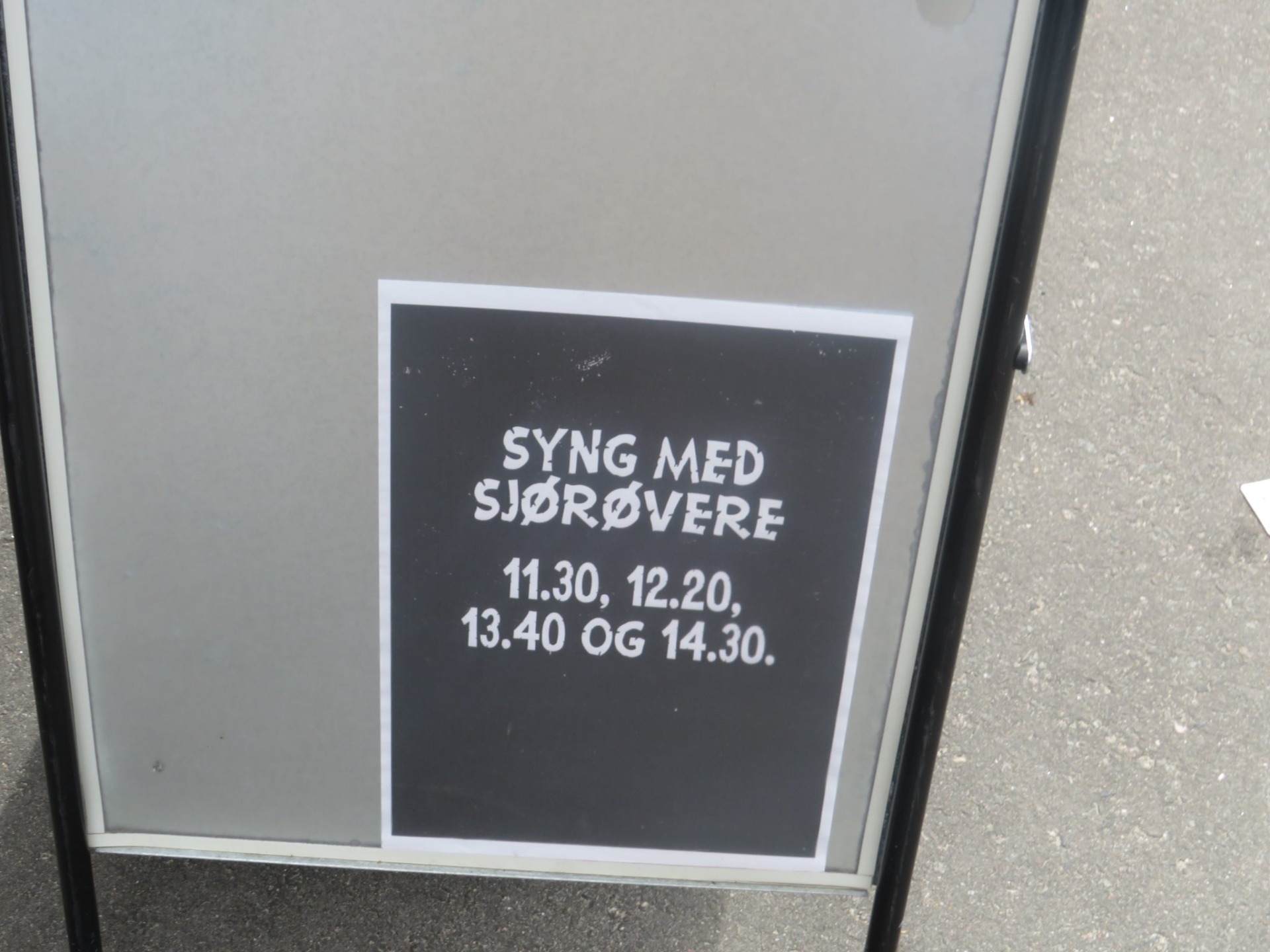 Kaptein Sabeltann løp opp og ned der folkene satt og sang en av sangene. Det var ganske utrolig litt av en underholdning.