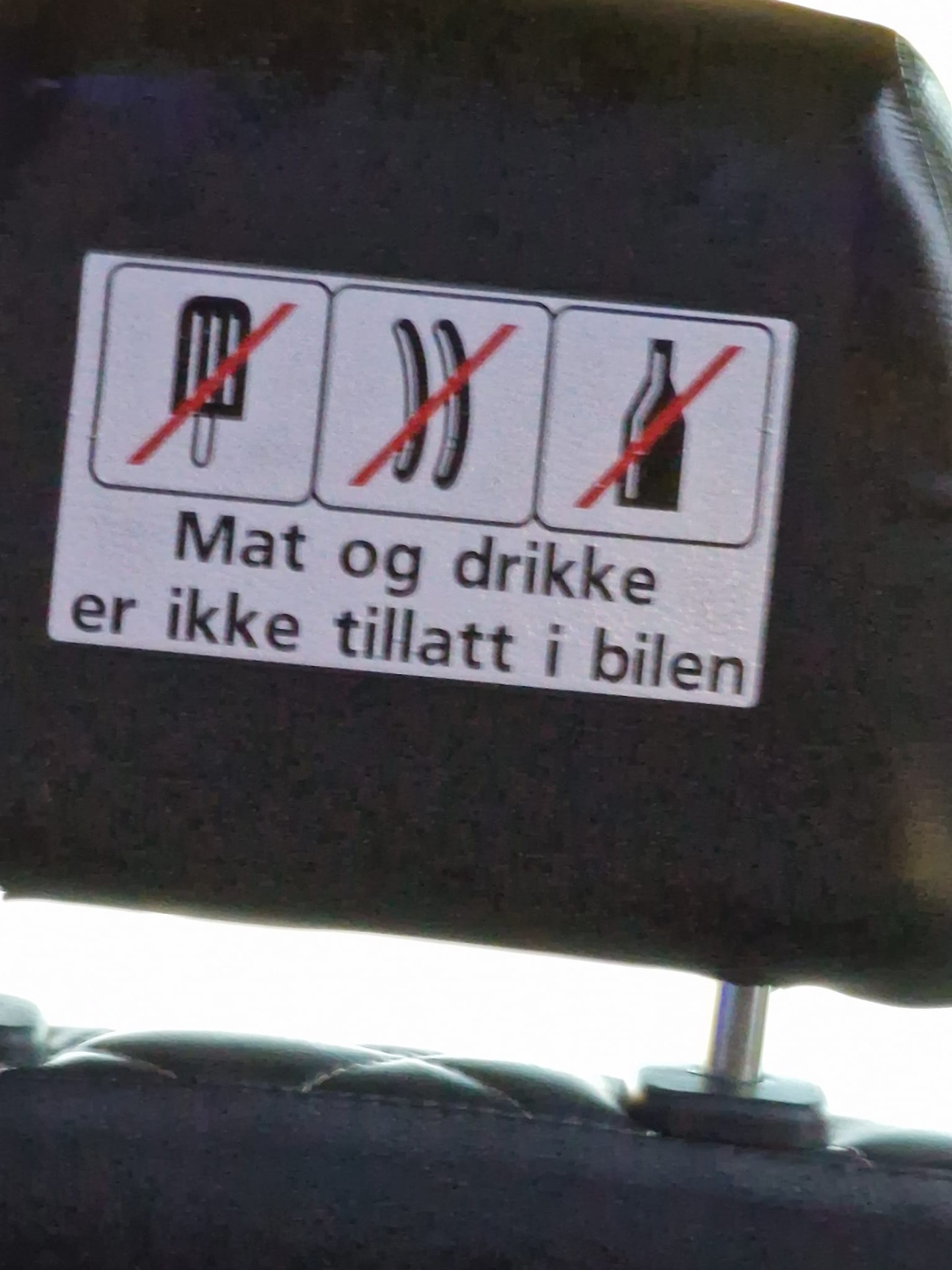 Det er viktig å følge det som står ved inngangen. Ingen vil da ha en bil som har blitt sølt mat på innsiden og laget flekker.