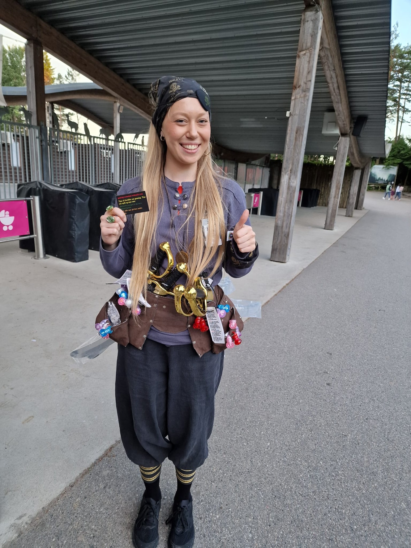 Jeg trodde nesten jeg skulle ikke klare å finne pirattaxien siden jeg så rundt etter den men fant taxien til slutt Det tok litt tid før den kom til Dyreparken siden den måtte stoppe litt her og der for å hente folk på andre steder man kunne stoppe. Etter Kaptein Sabeltann showet kunne man sitte på ned til byen igjen. Jeg måtte ta en annen taxi siden jeg ikke ville gå til hotellet pga det var mørkt ute og det føltes litt sånn ubehagelig.